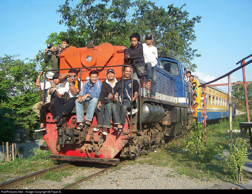 BB 30029, pull KA 991 from Wonogiri to Purwosari, Solo, Central Java. This photo taken in near Purwosari station, with Indonesian Railfan activity posed in front of locomotive.