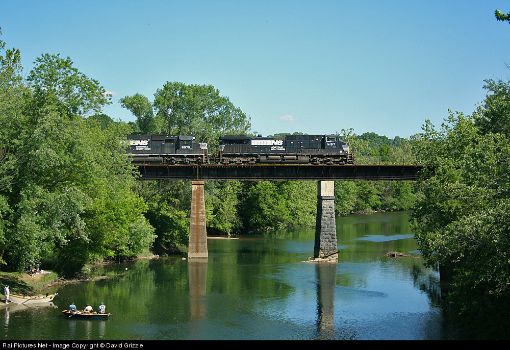 Sportsmen take a break from fishing to do some rail fanning and enjoy NS 22A crossing the Watagua River east of Johnson City, TN