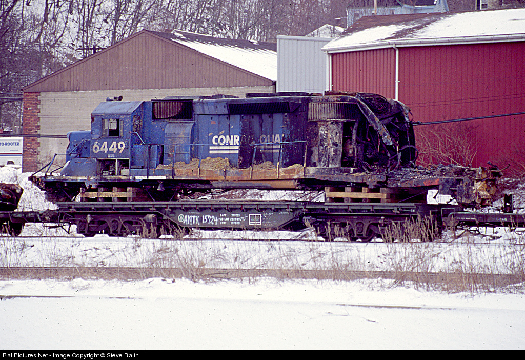 SD40-2 that caught fire in a wreak at Eiffingham Ill.