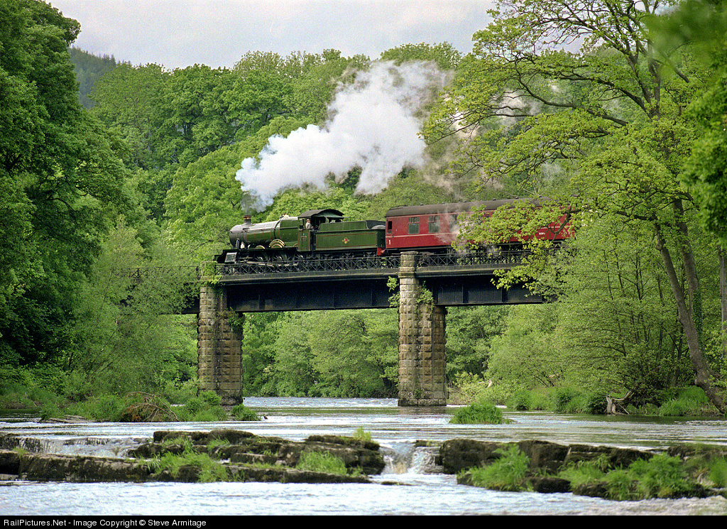 The superb proportions of the 'Manor' class 4-6-0's are shown to good effect as 'Foxcote Manor' threads the tranquil beauty of the Dee valley. This lovely bridge is about 1 mile out of Llangollen. Once across the bridge the train will face a stiff climb for another mile before arriving at Berwyn station.