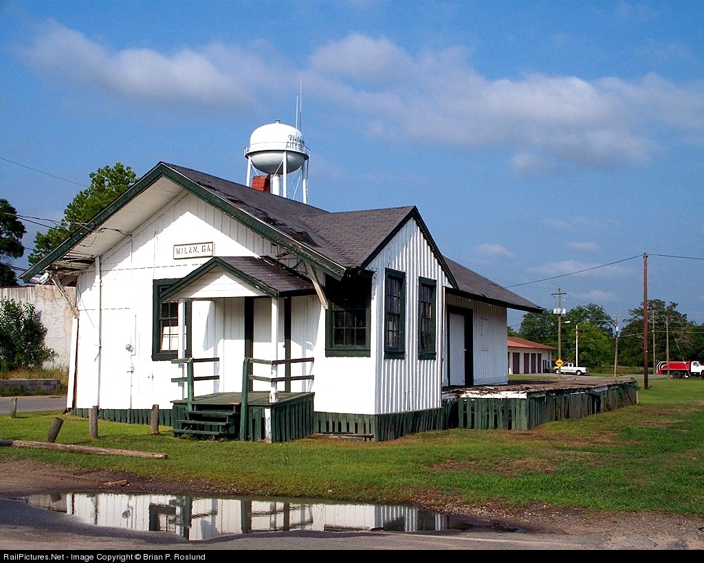 The former Seaboard Air Line Railroad Station still stands in Milan, Georgia. The tracks are owned by the Georgia Department of Transportation and operated by the Heart of Georgia Railroad.