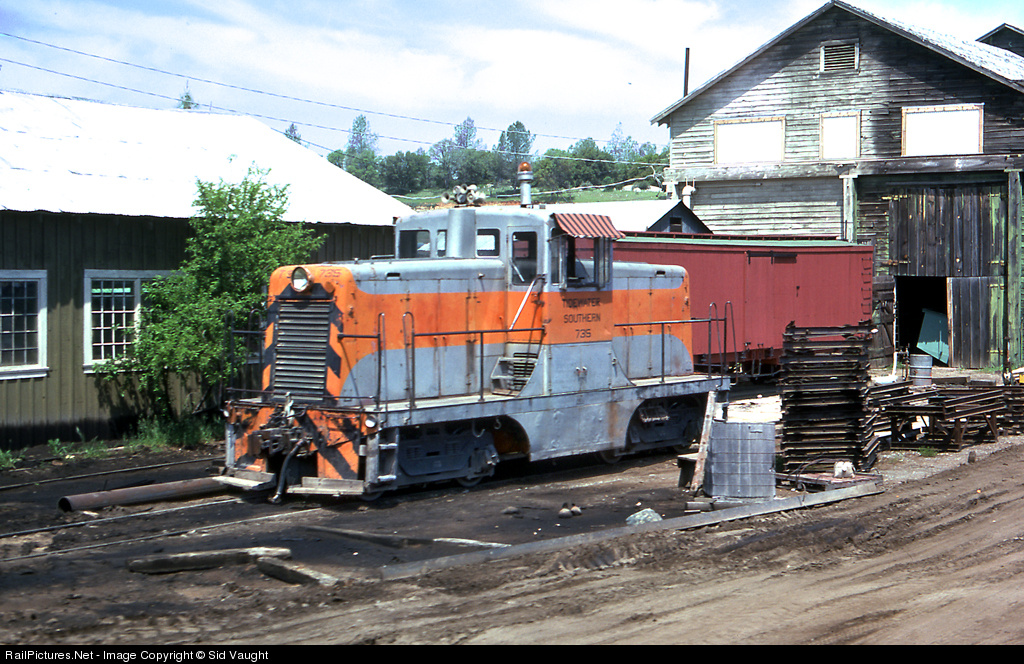| We had driven to the Sierra RR for steam trip which ended right about this spot where the Tidewater Southern unit was leased to switch the mill. Too late for West Side Lumber which used to come in from the east side. |