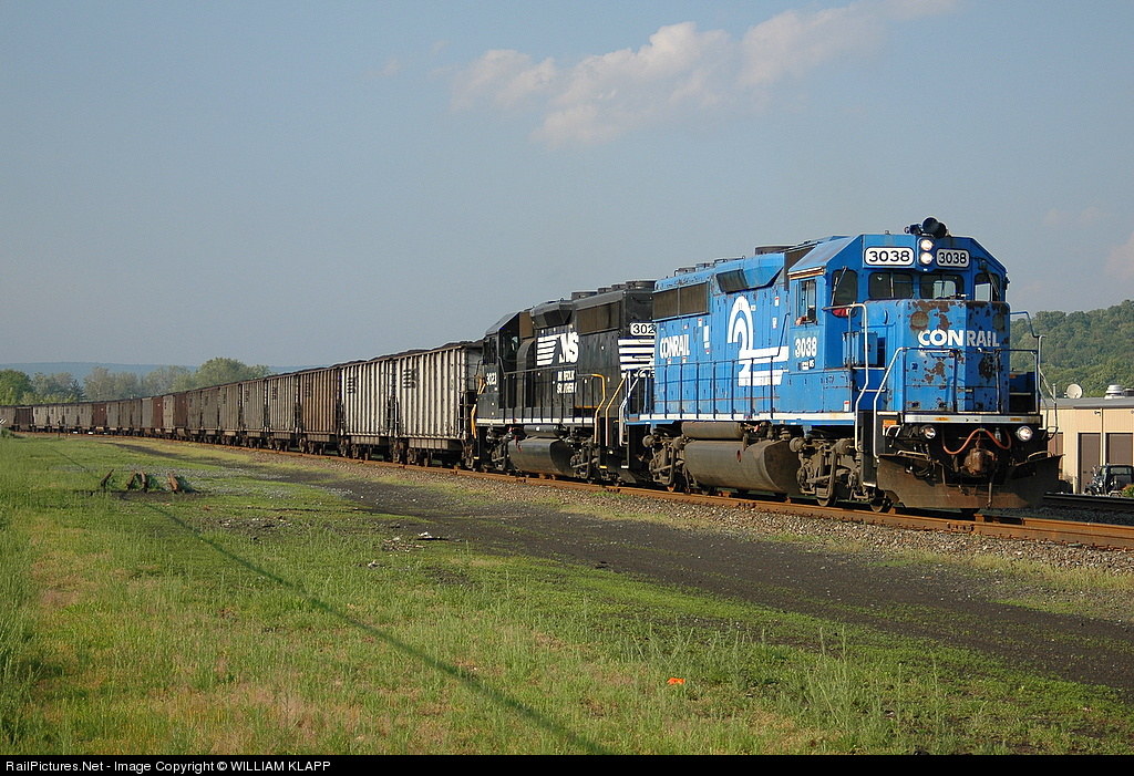 Southbound after dropping off 6 axle road power and replacing it with 4 axle engines as the Shamokin Dam powser plant track is to sharp for it. Train is on the siding approaching Packer St. With CP Horn signals just beyond that. This was taken in late evening.