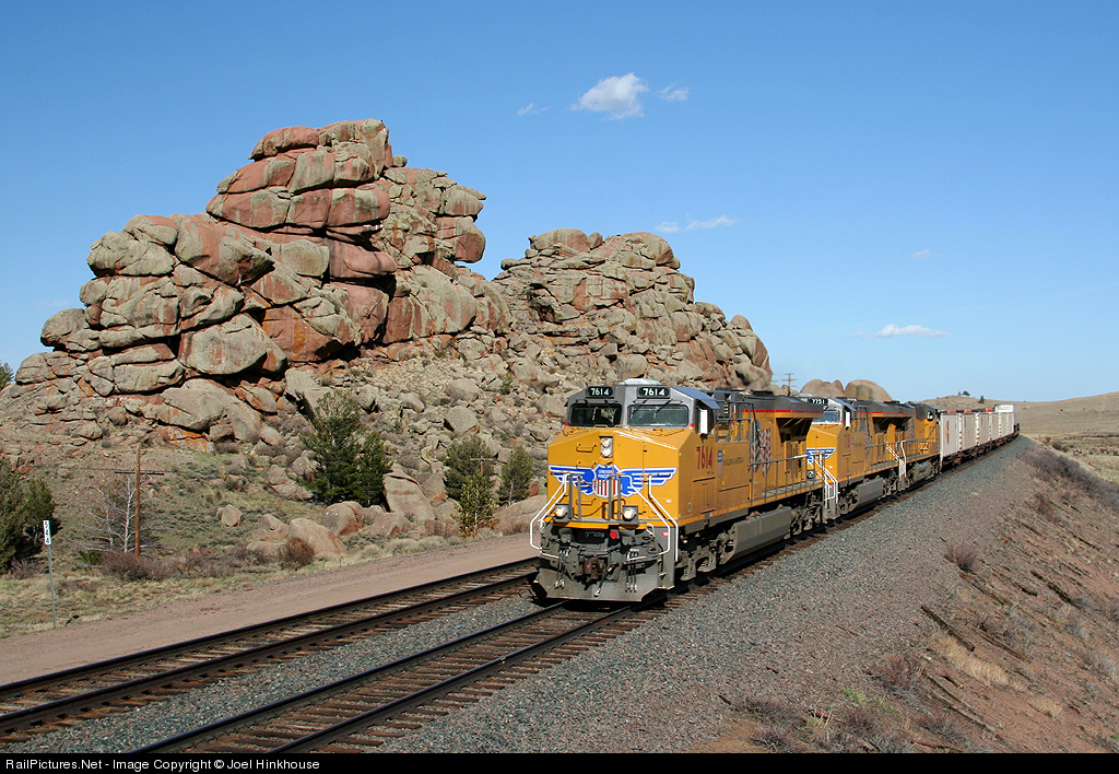 A trio of GEVOs, the oldest one in service less than 15 months, slides downhill westbound around the Vedauwoo rock formations at Dale Creek. It seems my luck here with afternoon sun and a westbound taking the main (instead of the Harriman Cutoff, directly behind me) has finally turned.