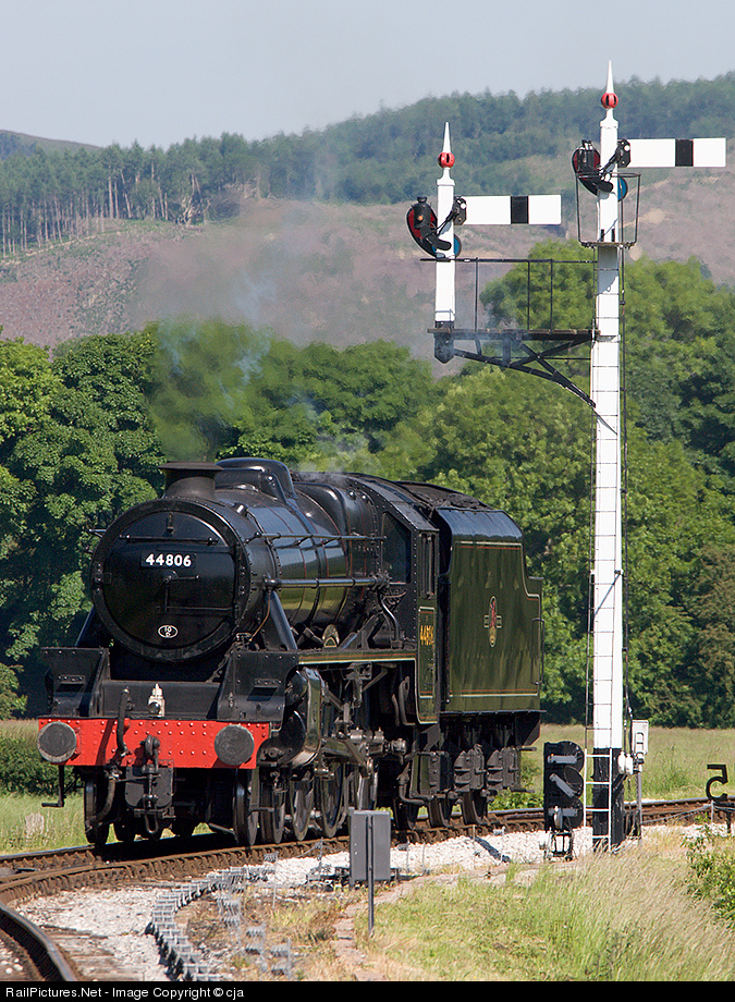"What do you want to do this weekend," I ask my four year old son. "Go to the steam train station," he replies, (every weekend)! So here we are again...LMS 5MT Black five, "Kenneth Aldcroft". About to hook on to a train back to Llangollen, seen passing under a set of well cared for GWR semaphore signals.