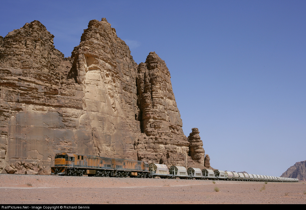 RailPictures.Net Photo: 315 and 303 Aqaba Railway Corporation GE U20s at Wadi Rum, Jordan by Richard Gennis