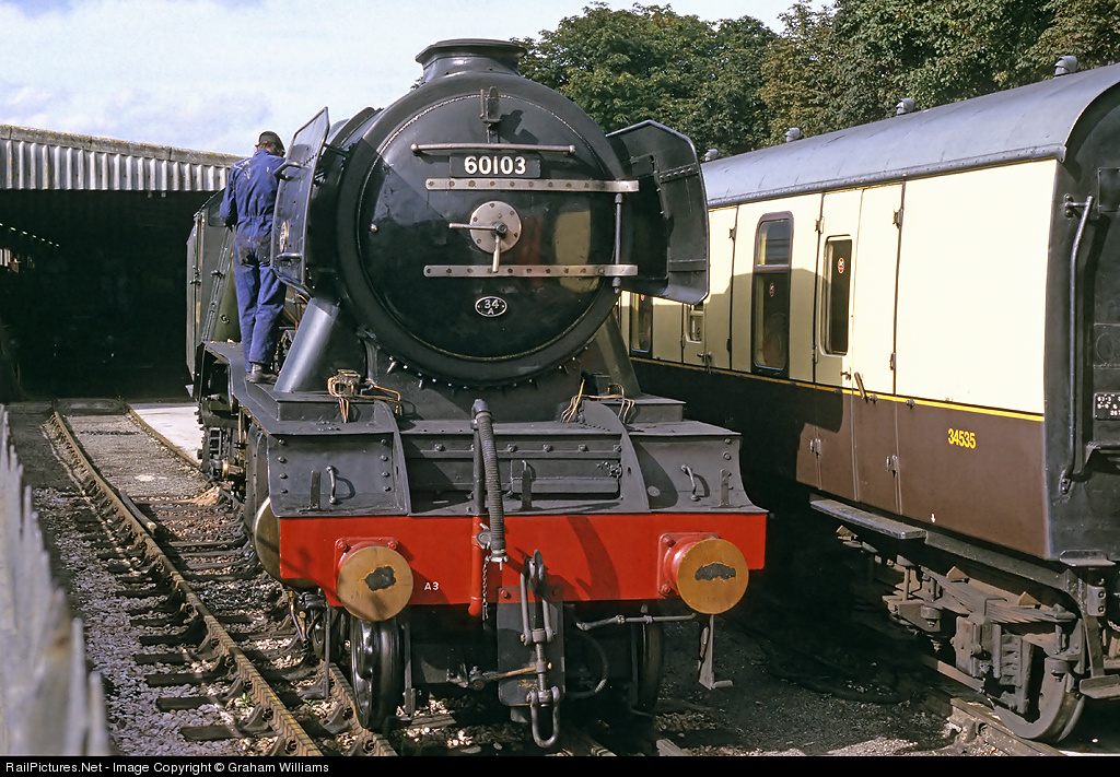 | An old shot from 1993. Flying Scotsman was painted in British Railways livery for a short time back then. Here it is as 60103 being cleaned whilst on a visit to the Paignton and Dartmouth Railway. |