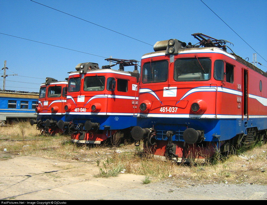 | ZCG-Railways of Montenegro locos 461-037,-040,-027 in font of the depo at Podgorica station,Montenegro