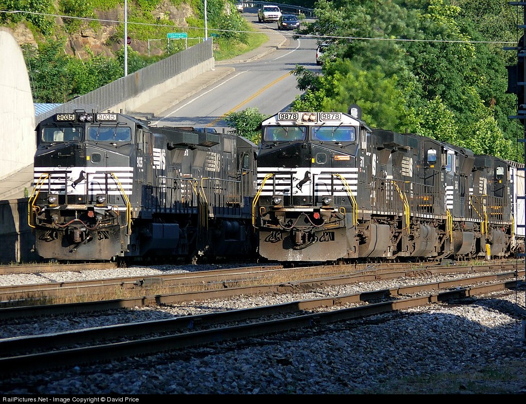 | NS 9035 is idling away, as NS 9878 is undergoing a crew change, and will get under way momentarily. |
