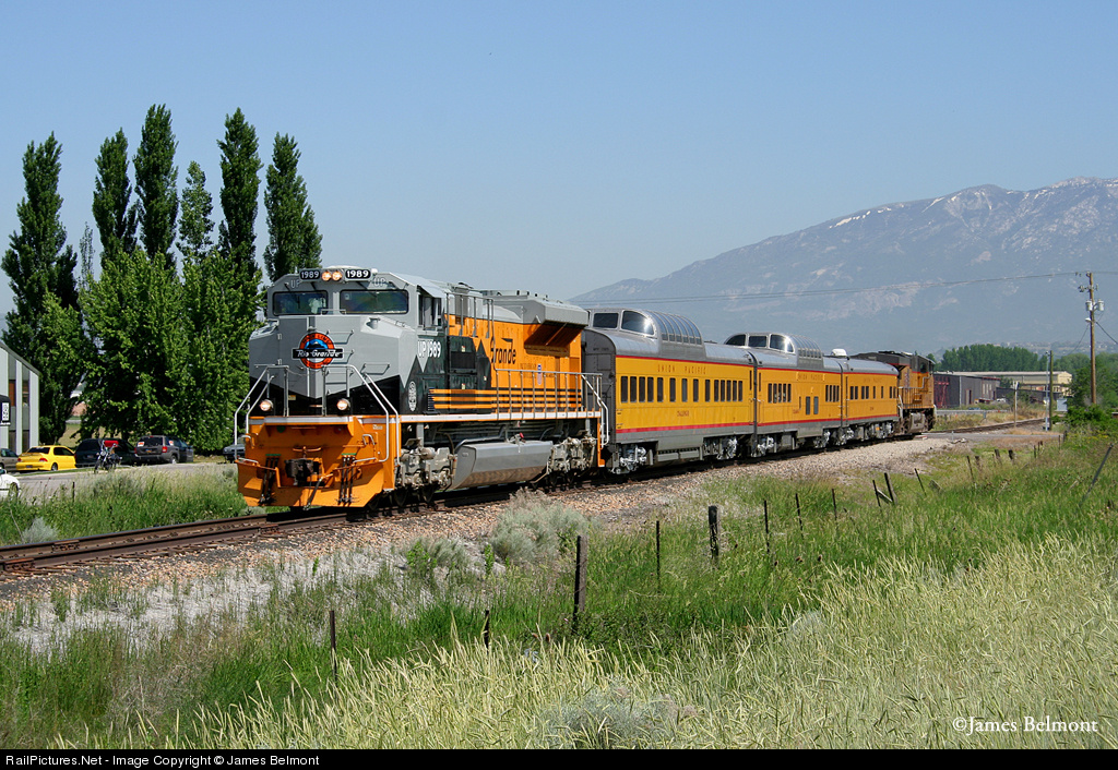 A Union Pacific Operation Lifesaver Special rambles down the old SLC-Provo main approaching the town of Pleasant Grove. This line ceased to be a through route late in 1985 when UP gained trackage rights along the more or less parallel Rio Grande route to the west.