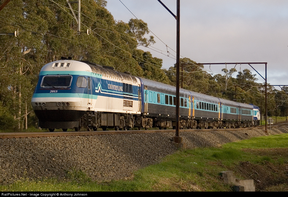 XP2015 is on the trailing end of a westbound XPT service. 2015 still retains the MkII Countrylink livery whereas the rest of the train has been repainted in the latest livery.