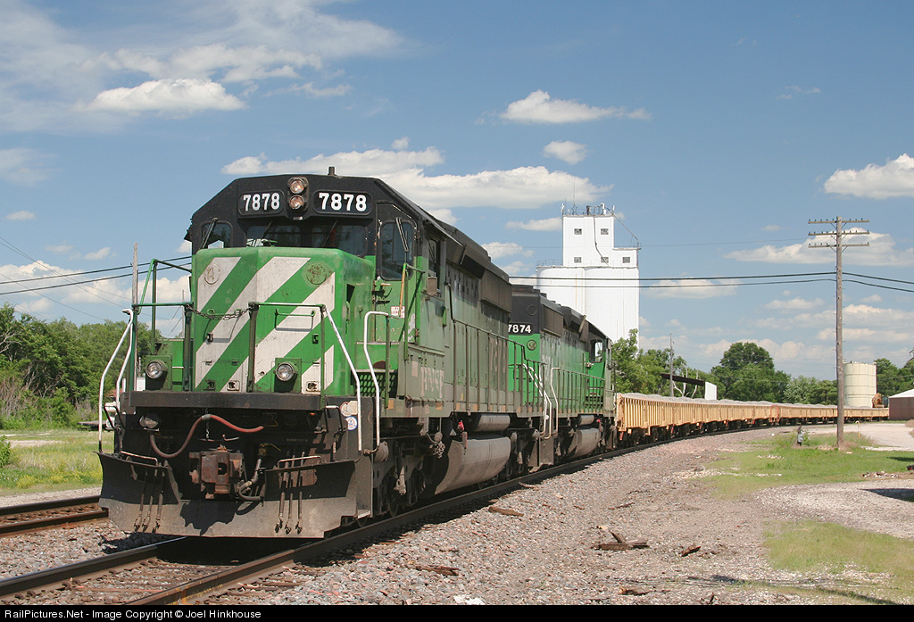 A ballast train bound for the flooded areas around Gulf Port, IL and Burlington, IA, holds in downtown Monmouth, IL, awaiting maintenance dispatch. This subdivision was still under water in Burlington, IA ... as far as the IL side of the bridge goes, who knows?