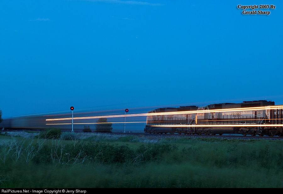 A coal empty sits in the hole at Keensburg as the Kansas City to Denver Z train streaks by on the mainline. Canon EOS D60, Canon EF 50mm f/1.4, 10 seconds @ f/9.5