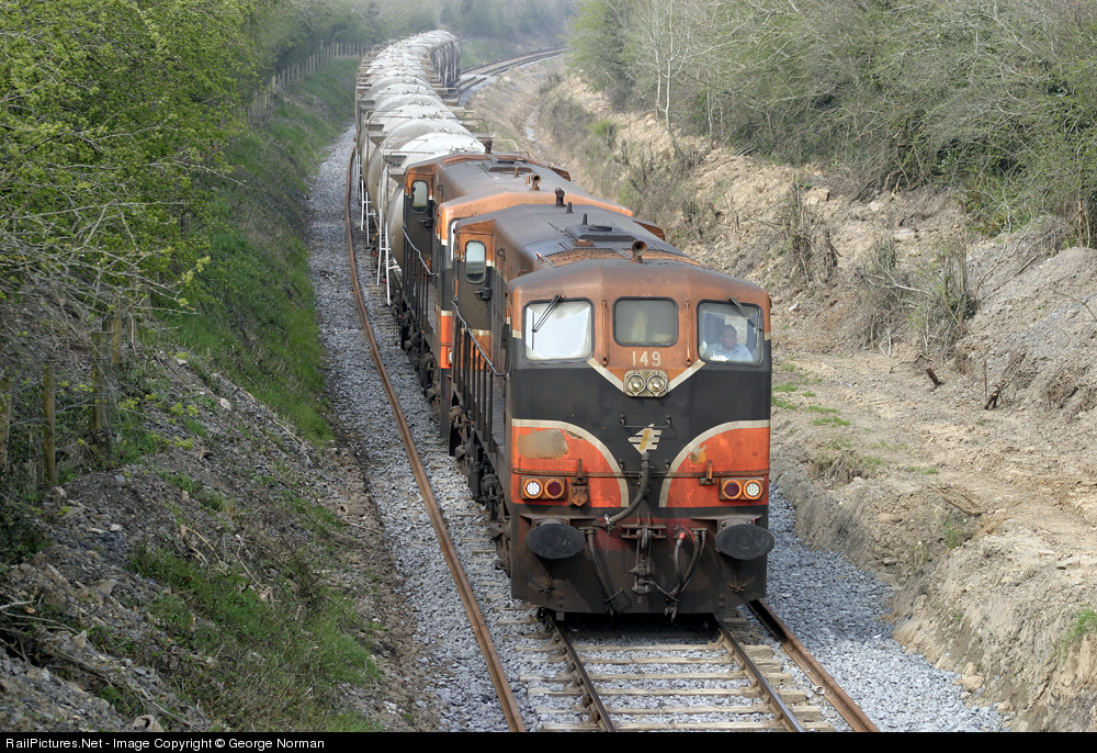 A view here of the once regular Cement Train from Limerick to Waterford at a location about a mile East of Limerick Junction. 149 is the other engine.