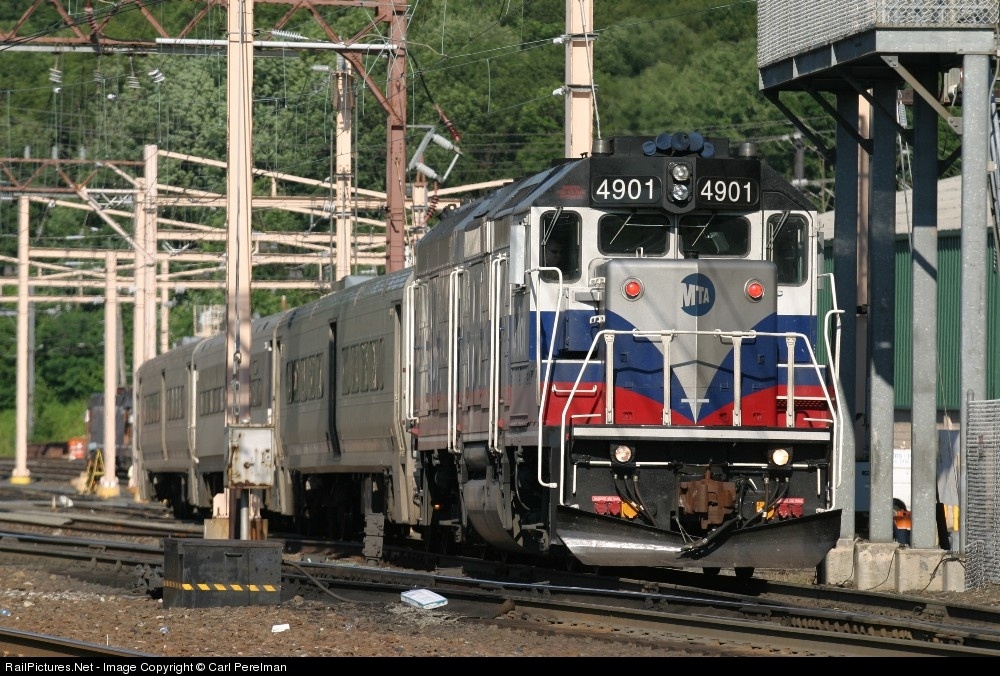Metro North GP40FH-2 4901 pushes a train into the Dover MU yard.