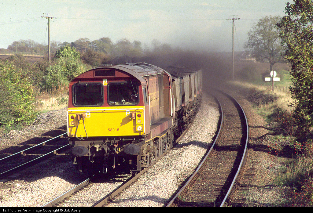 One of the rather ungainly looking class 58s with another load of imported coal from Immingham. The train is suffeing from severe coal-dust blow-off which causes environmental damage and loss of payload.