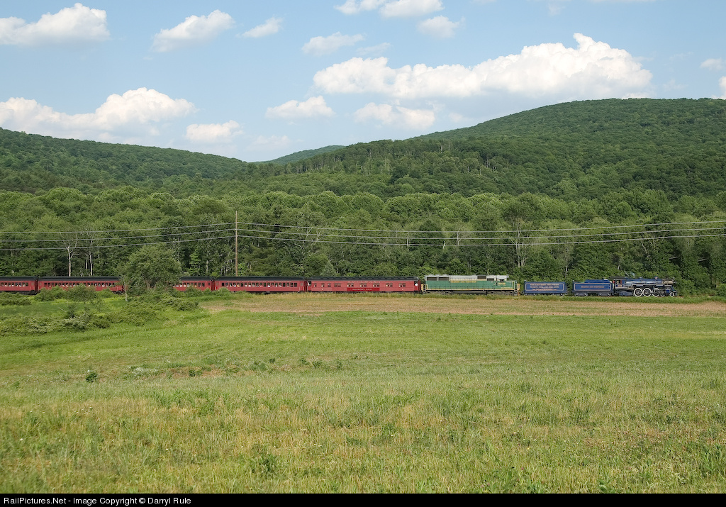 | Nearing the end of her first revenue excursion since being restored to service, 425 rolls through one of the many fields along the former Reading line. |