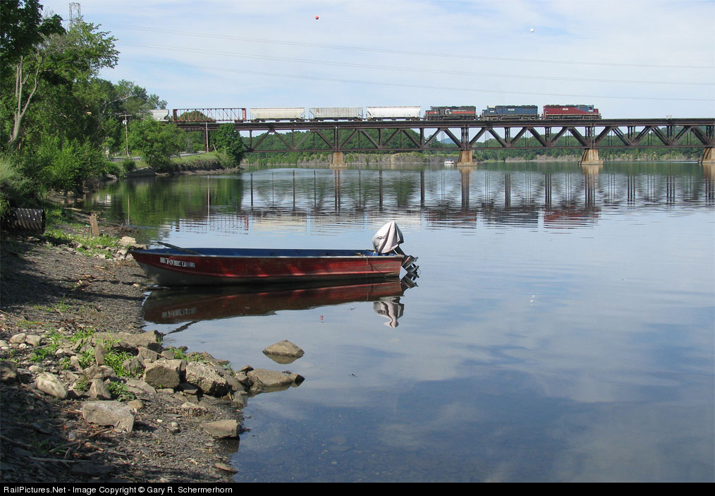 A tranquil scene at Stillwater NY as an afternoon eastbound Pam Am SEED heads for Hemstreet Park over the Hudson River on a Fourth of July.
