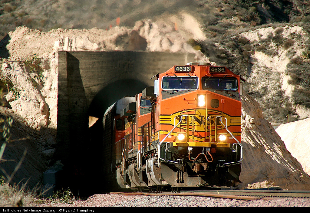 BNSF 4636 passes under the tunnel portal eastbound through Alray.