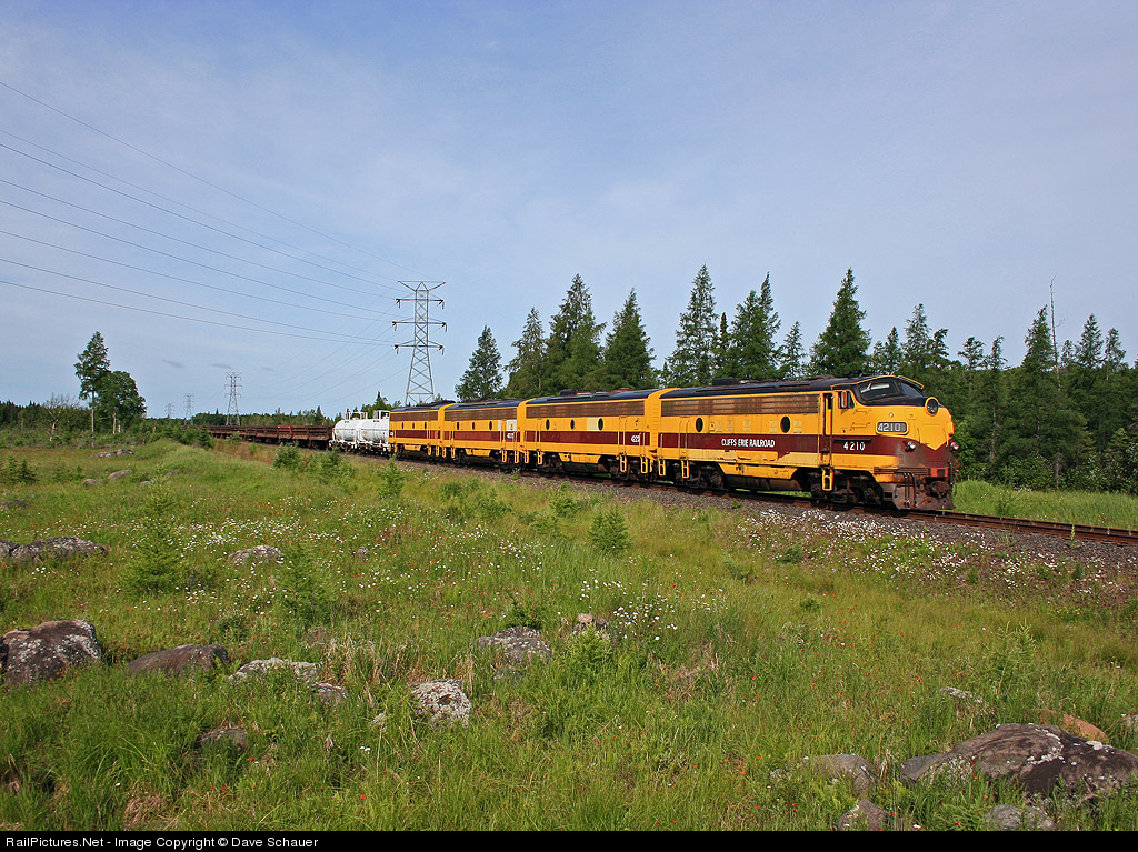 | After two years of inactivity, the crew of the first train over the former Erie Mining mainline pauses at Sarto (Highway 2) to inspect their train. 4210 is the only F9 lettered for Cliffs Erie (current owners of the property, a subsidiary of Cleveland Cliffs). |