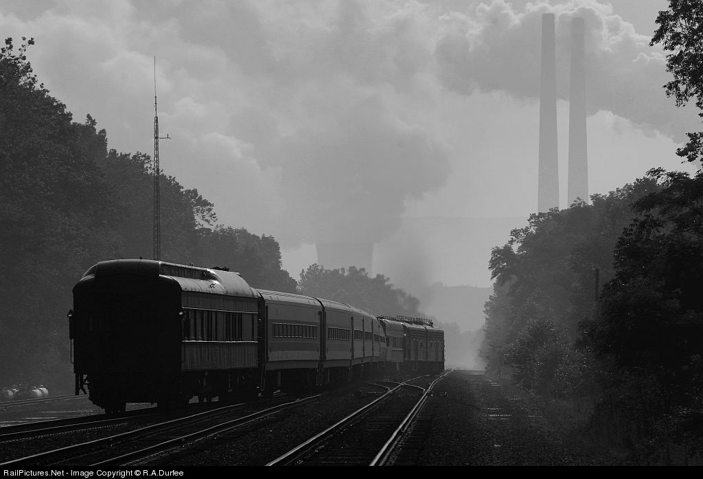 The Pittsburgh to Altoona Railfest train crosses over from the Conemaugh Line to main 1 at Conpit Junction as the Huff power plant does it's thing on a humid Sunday morning.
