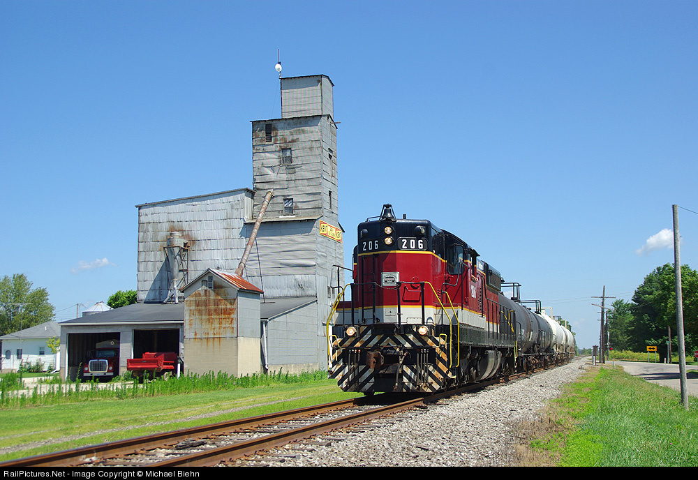 | Former Algers, Winslow, and Western SD9 pulls a short string of tank cars to Fernald, Ohio. |