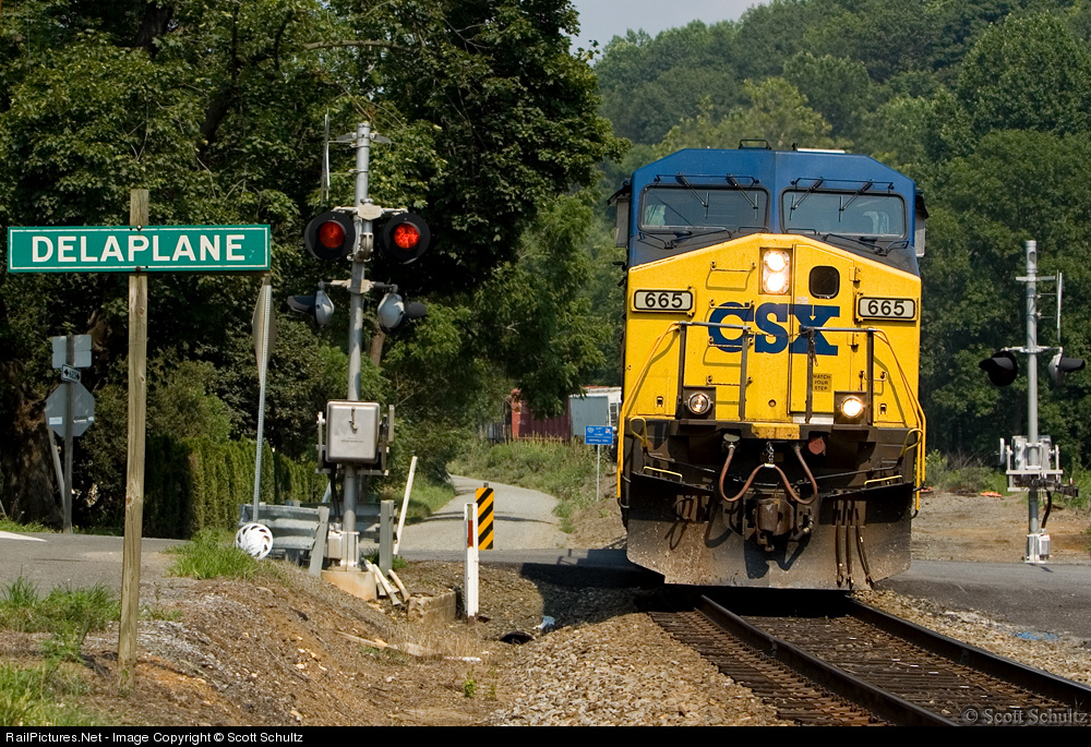 | NS 12R is westbound on the B-Line, at Delaplane with 3 CSX units for power. One AC6000CW #665, and two AC4400CW's numbers 598 and 414. |