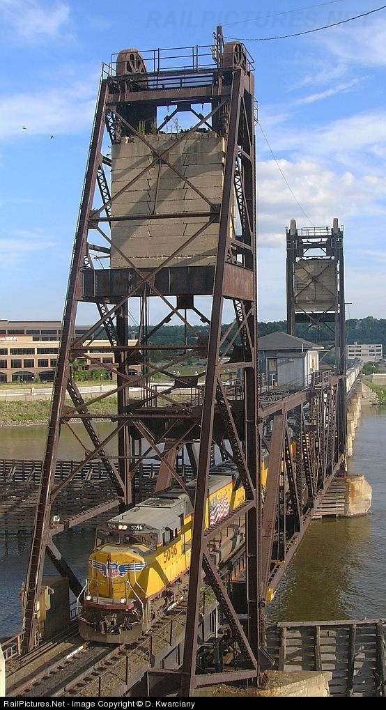 A different angle of the Robert Street Lift Bridge with CP train 599 and three UP SD70M's.