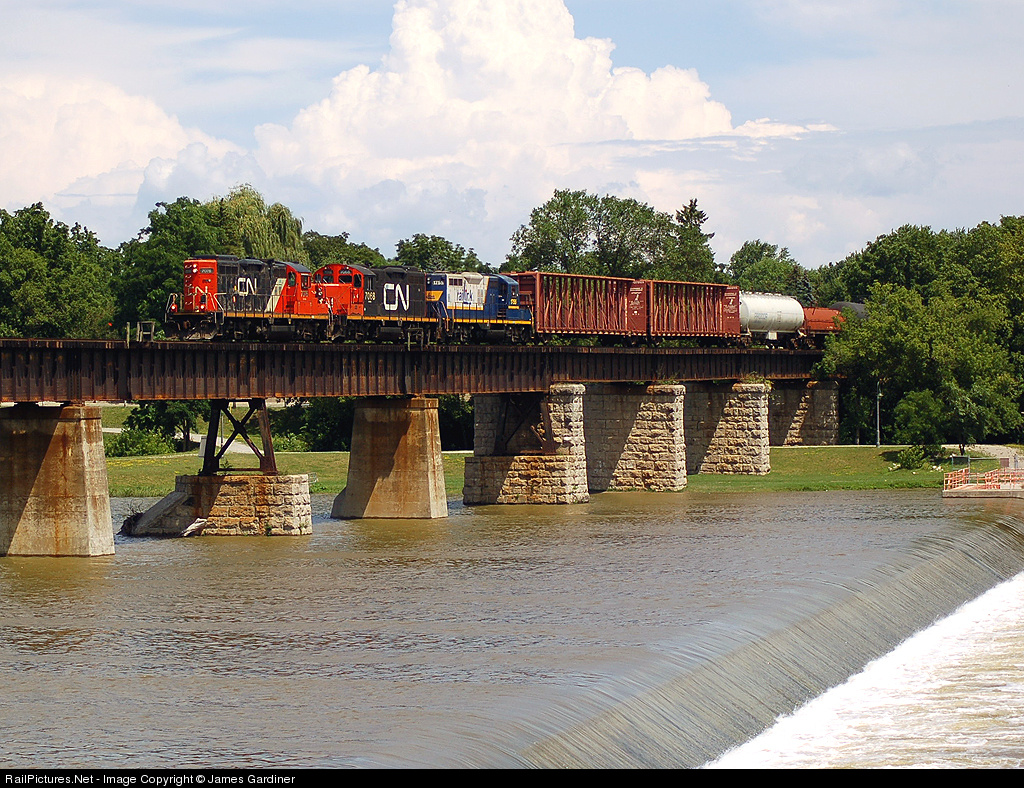 RailPictures.Net Photo: CN 7076 Canadian National Railway EMD GP9 at Caledonia, Ontario, Canada by James Gardiner