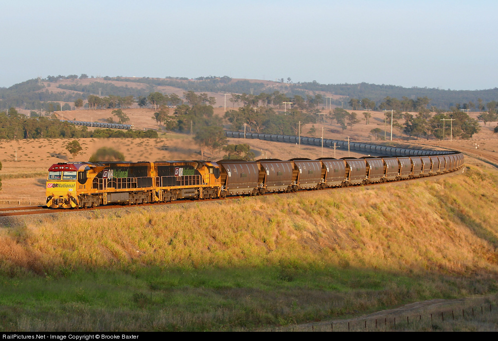 | 5001 and 5003 head past Lidell and Bayswater power stations in the New South Wales Hunter Valley, while another empty returns to the coal loader. |