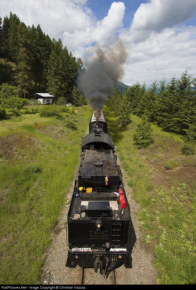 | As 2141 charges out of Armstrong, BC for Campbell Creek one can see what is needed to keep this steam engine from running, if it wasn't for the tender... there would be no fuel or water for the locomotive! |