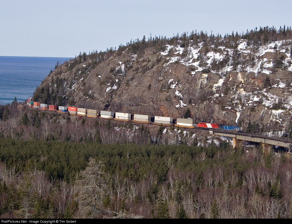 CEFX 1059 begins the climb up Neys Hill by crossing the Little Pic River.
