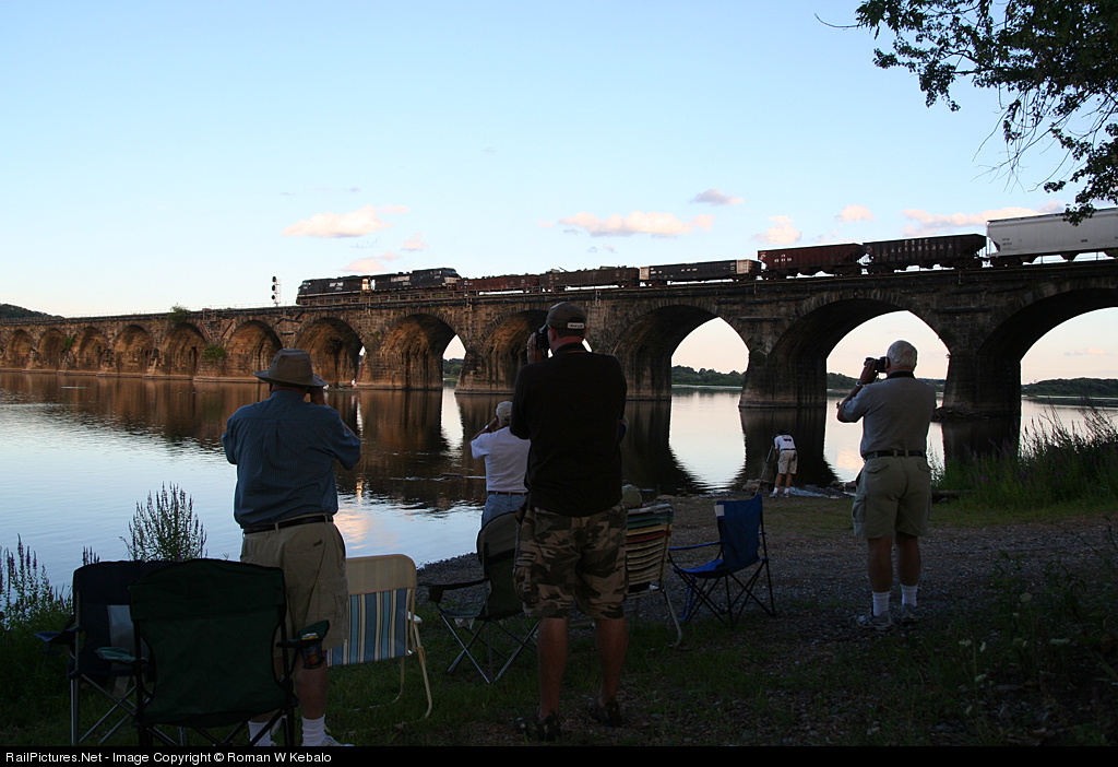 To cap off my day, I decided to drive down to the Rockville Bridge Overlook and relax a bit ... and stumbled upon three car loads of Connecticut railfans that had just arrived from Altoona!!!