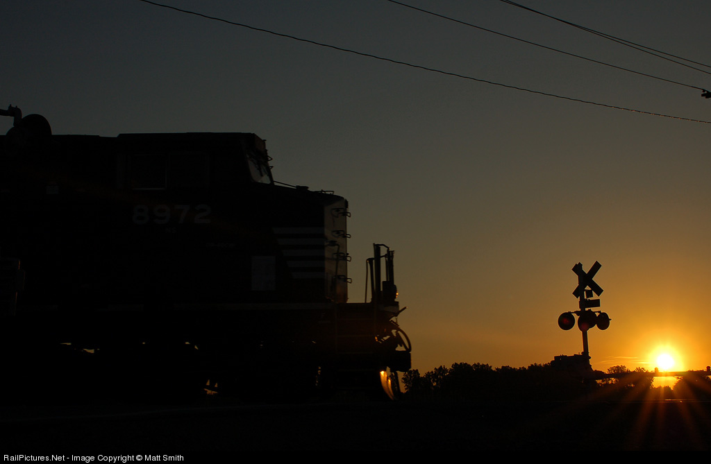 Norfolk Southern eastbound train 178, with NS 9672, is crossing Whales, Rd., in Northwood, Oh. as it heads for Bellevue, Oh. racing from the rising sun, and the nice day ahead.