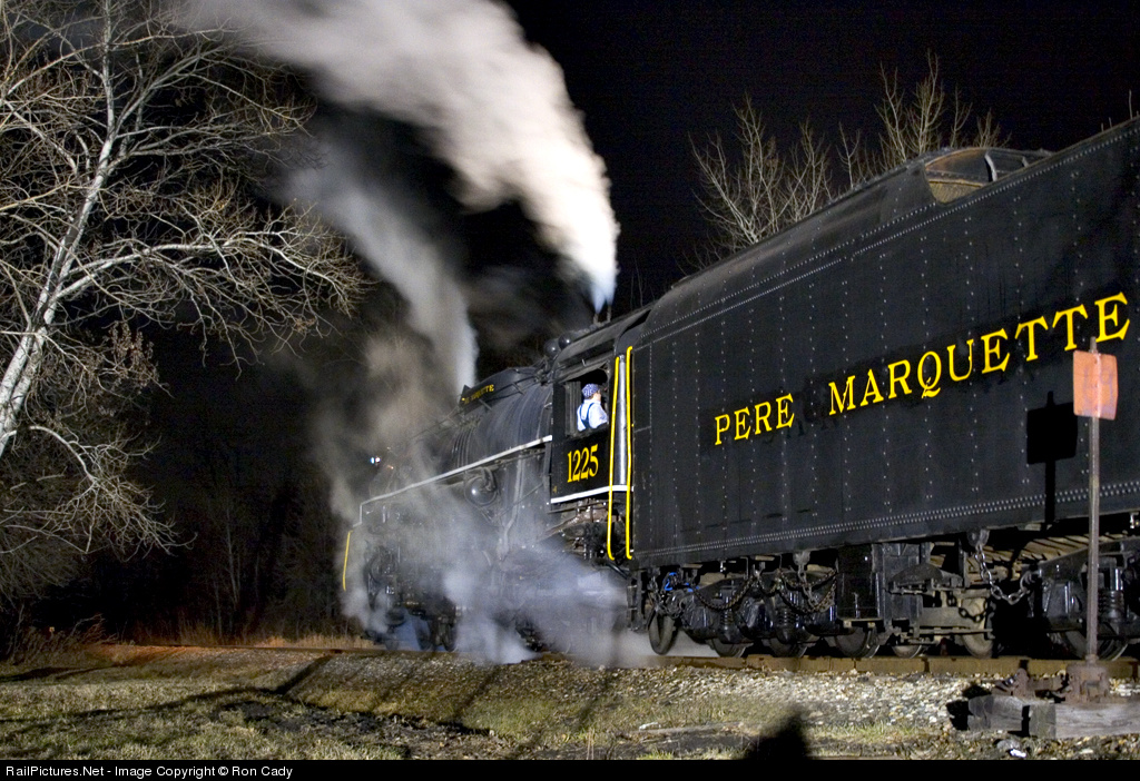 Pere Marquette Berkshire NO. 1225 rests after pulling the "North Pole Express," while its off-loaded passengers participate in seasonal events at the fairgrounds.