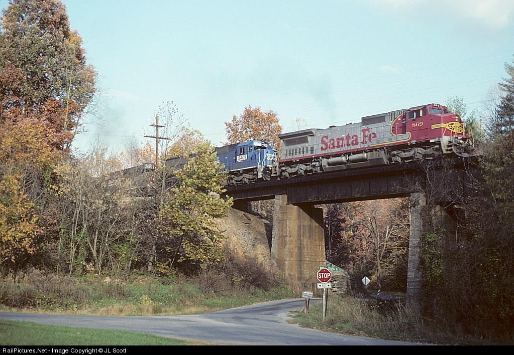 RailPictures.Net Photo: ATSF 869 Atchison, Topeka & Santa Fe (ATSF) GE C40-8W (Dash 8-40CW) at Wrights, Virginia by JL Scott