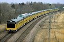 A WSOR business train cools its heels at the Milwaukee Amtrak station. Tomorrow morning, it will carry shippers to Horicon. The power this evening are WSOR's pair of E9As, bracketing a freshly outshopped E9B!
