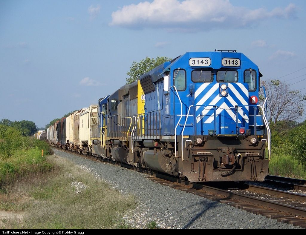 CEFX SD40-2 (rebuilt from a SD45) 3143 sits with a rare daylight westbound manifest on the old Rock mainline.