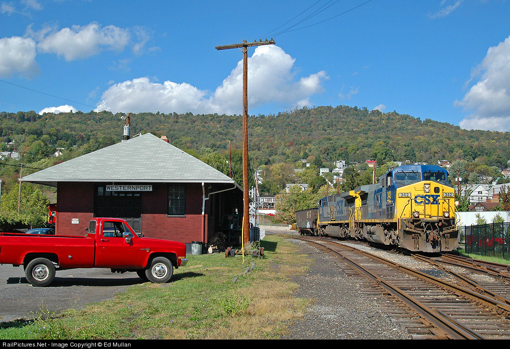 342 and mate have a bad order hopper in tow here. They are bringing it down from the coal loader at Morrison's, and will crossover to the near track here, which is the old Western Maryland Thomas Sub, and shove the car to Hampshire Yard, about four miles away.