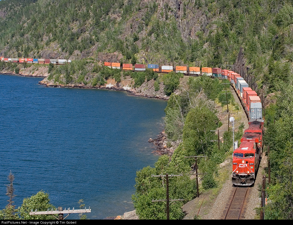 CP 8872 knocks down the block signal at MP 27 Nipigon Sub and is about to enter the Cavers Tunnel.