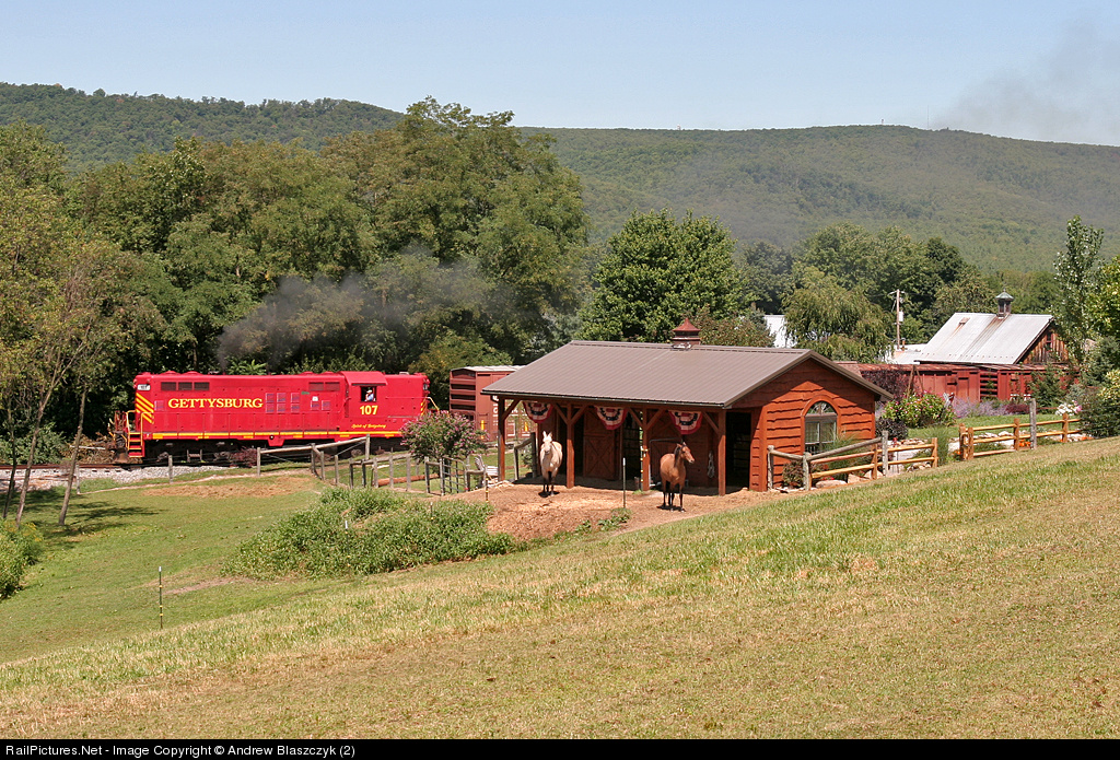 RailPictures.Net Photo: PREX 107 Gettysburg & Northern Railroad EMD GP9 at Hunters Run, Pennsylvania by Andrew Blaszczyk (2)