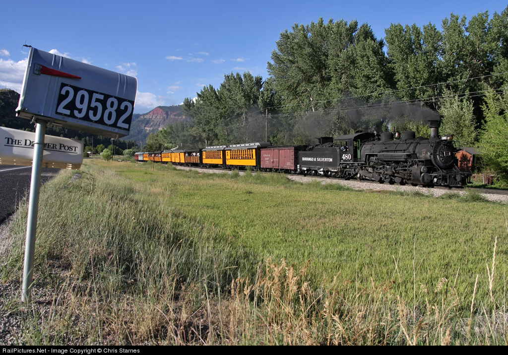RailPictures.Net Photo: DSNG 480 Durango & Silverton Narrow Gauge Railroad Steam 2-8-2 at Trimble, Colorado by Chris Starnes