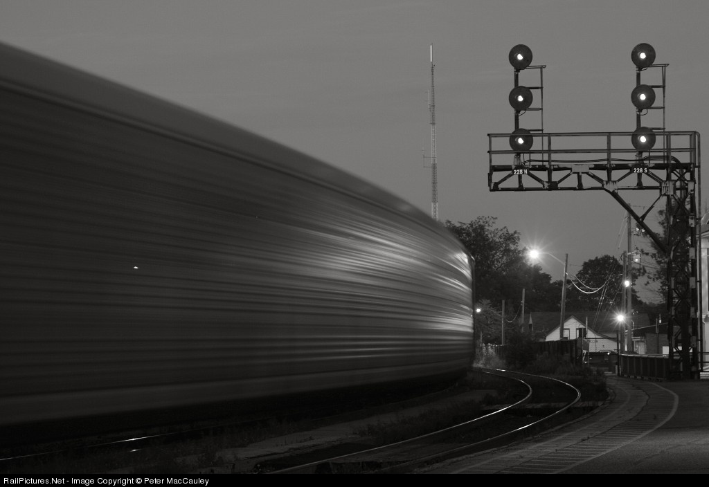 The autoracks of CN 399 streak past the Brantford VIA station. Unfortunately, the train would strike a car at a private crossing only minutes after this photo was taken, about eight miles west, in Paris. VIA 78 also hit the car, bringing everything on the Dundas sub to a stop.