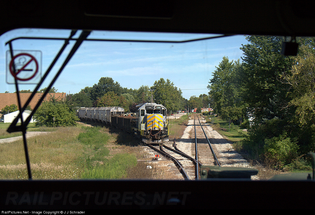 Saginaw Bay Southern Rwy train Z144 north meets the Bay City local, Z126, that has ducked in the clear on the south side of Bay City. View is from the cab of BNSF 9936, a loaded coal train from the BNSF.