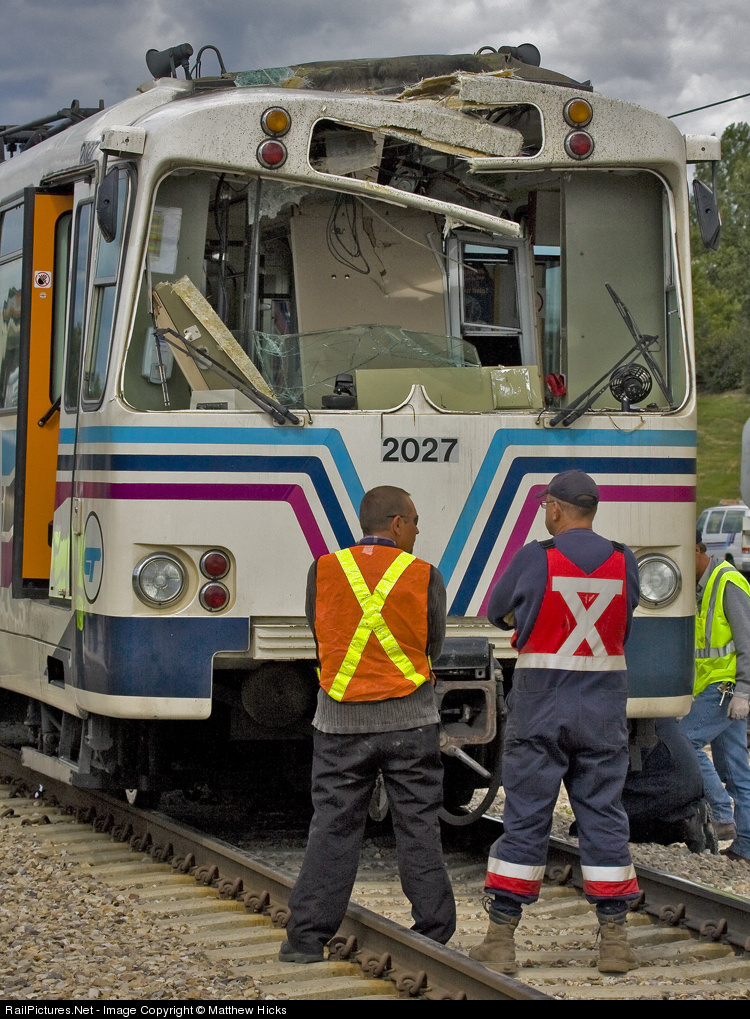 | Aftermath of an incident where a crane began working on the line ten minutes too early, causing the last train on the track to crash into it and block off all traffic on the second busiest road in the city |