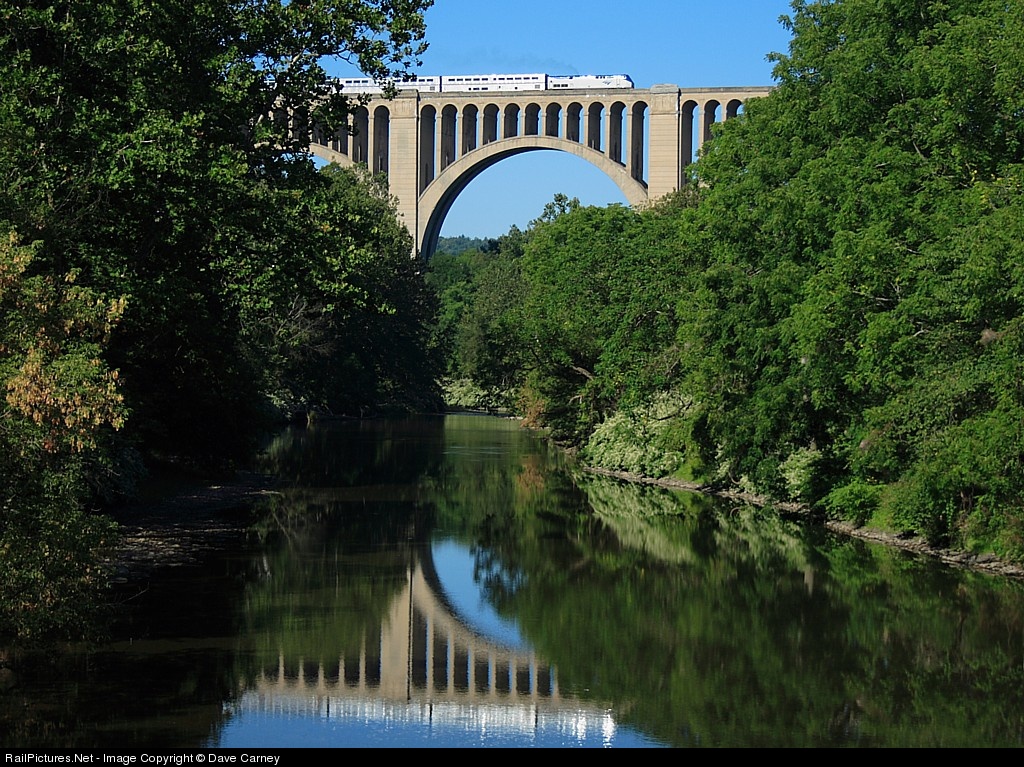 After a stop on the Viaduct, Amtrak 75 lets off a little smoke as it departs for Albany.