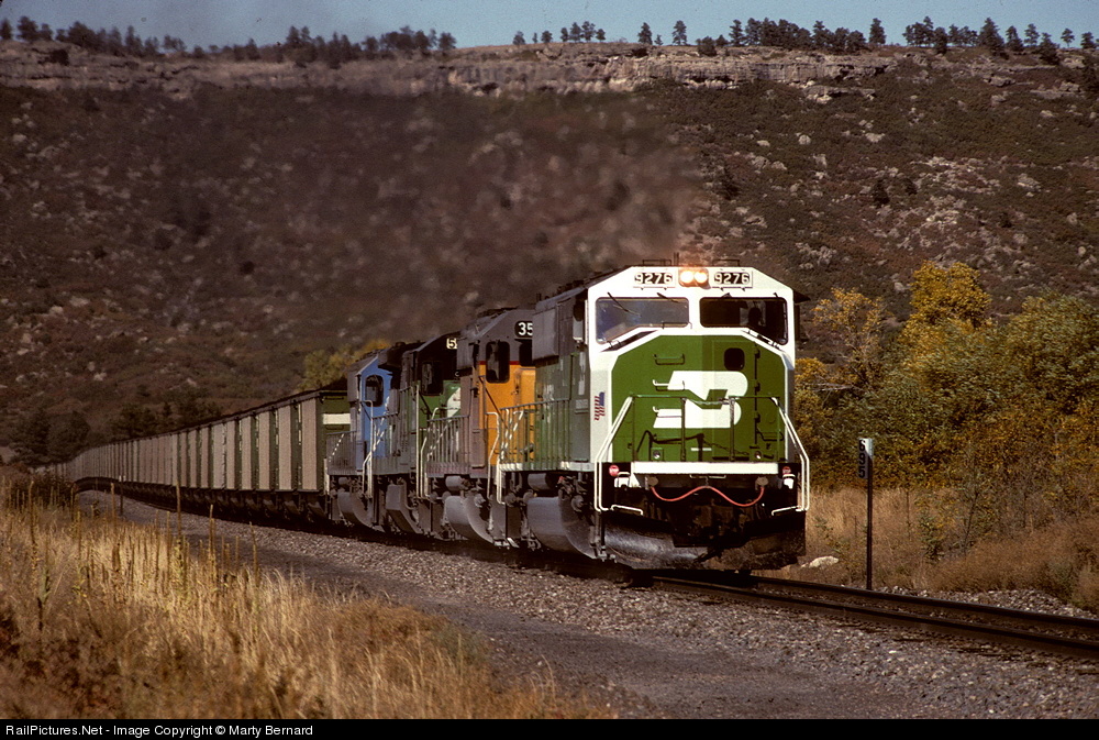 | Taking coal south. Units: head end BN 9276, UP 3535, BN 5529, EMD 9096 and rear-end helpers BN 7305 and BN 6707. |