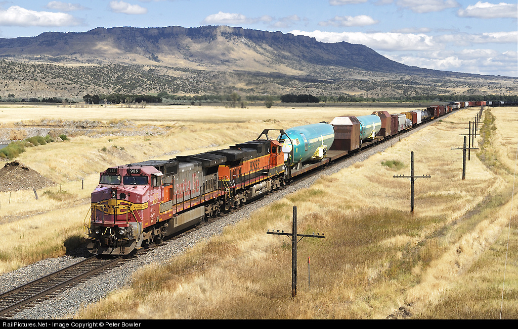 A very interesting freight consist rumbles over the route of the fabled North Coast Ltd. This MRL consist travels westbound toward its helper district stop in Livingstone, a former rail gateway to Yellowstone National Park. She carries two Boeing jetliner hulls headed west for assembly.