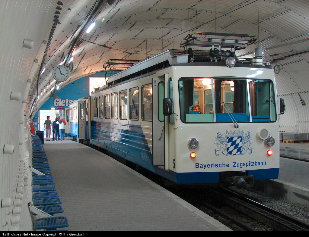 | on 2600m above sea level, EMU 5 waits in the tunnel station for passengers for the long descend to Garmisch |