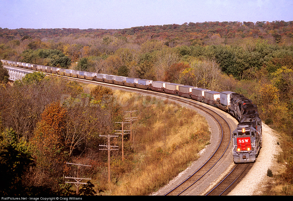 A City of Industry, CA to IMX yard in Chicago, IL intermodel train has just crossed the Des Moines River Bridge. The SP had trackage rights over the Santa Fe from Kansas City, MO to Chicago, IL, which the UP still uses today. This train has just crossed into Iowa from Missouri and is only 19 from Ft. Madison, IA.